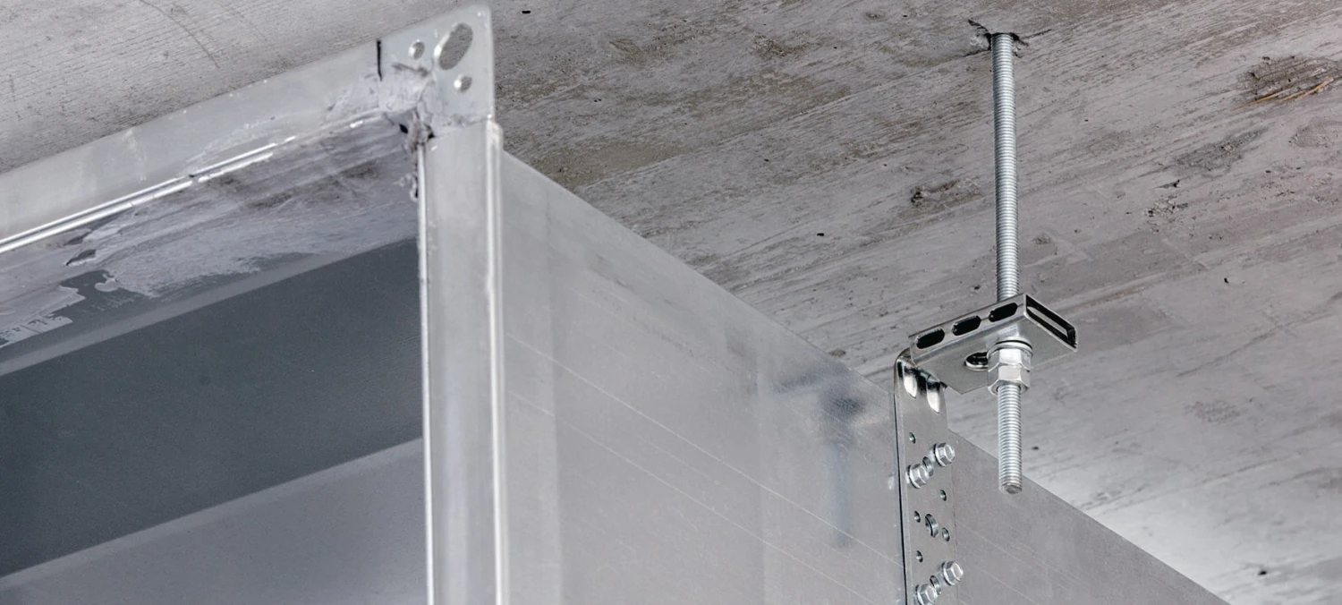 Fixation de gaines de ventilation rectangulaires au plafond
