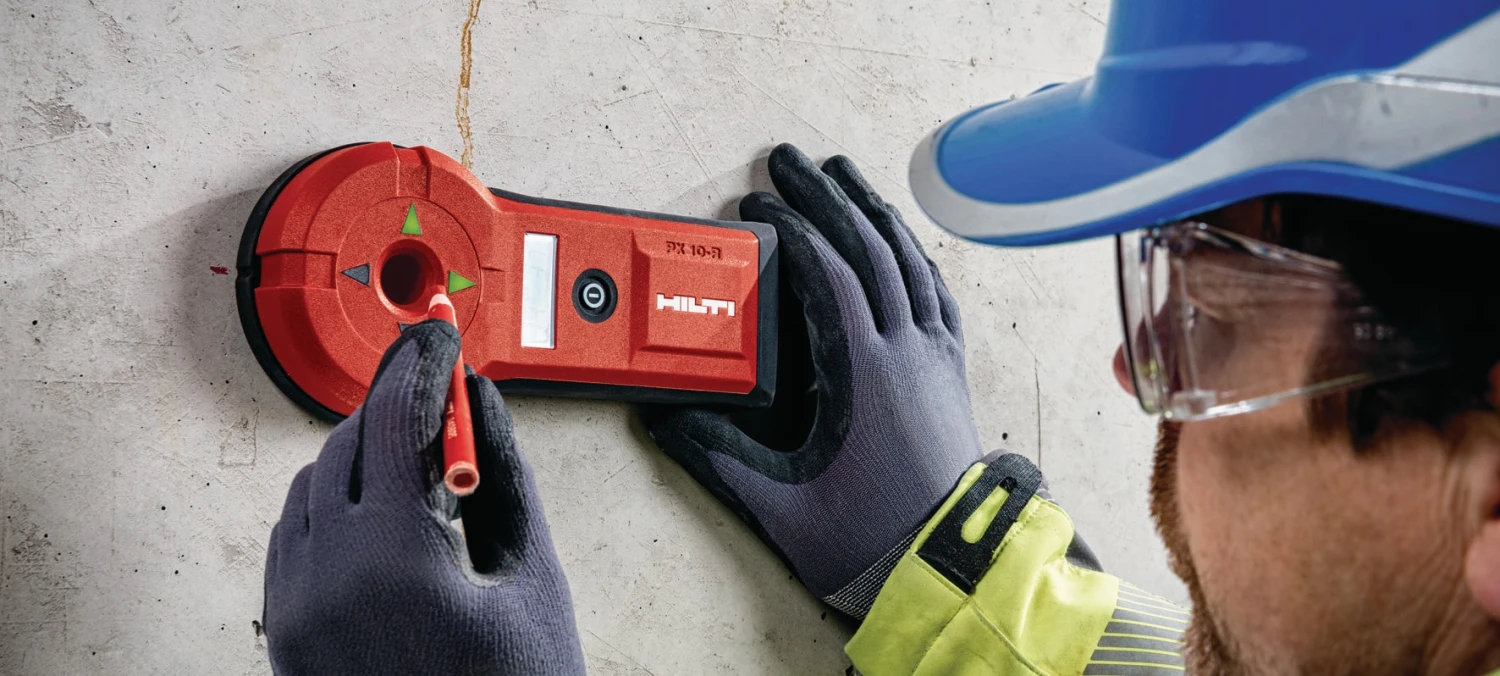 Localisation des points d’entrée / de sortie d’un forage dans des murs et plafonds en béton et maçonnerie